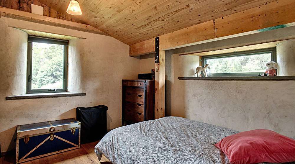 Isolée en paille et cellulose et construite avec des matériaux sains, cette charmante et lumineuse maison coûte très peu à chauffer et éclairer, et assure une excellente qualité d'air.