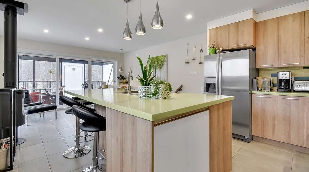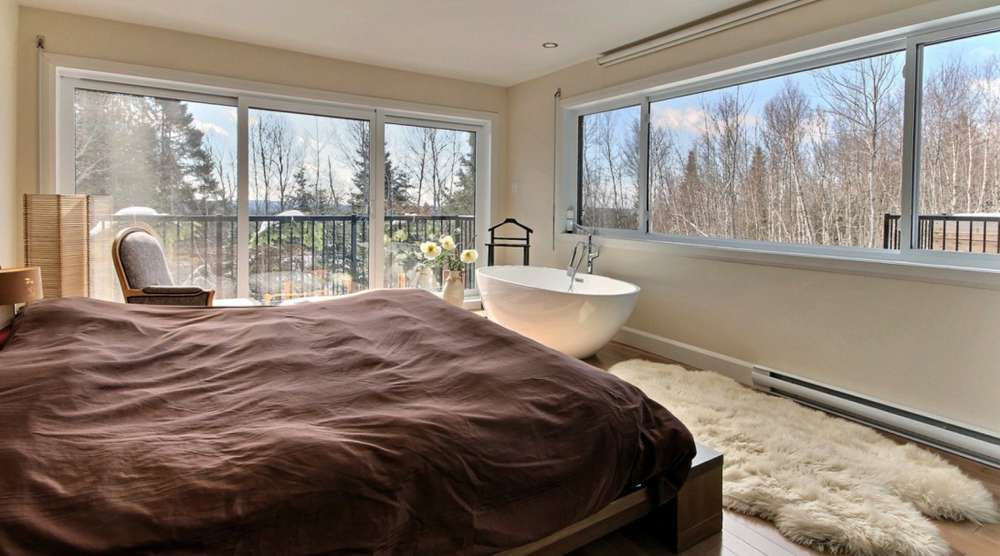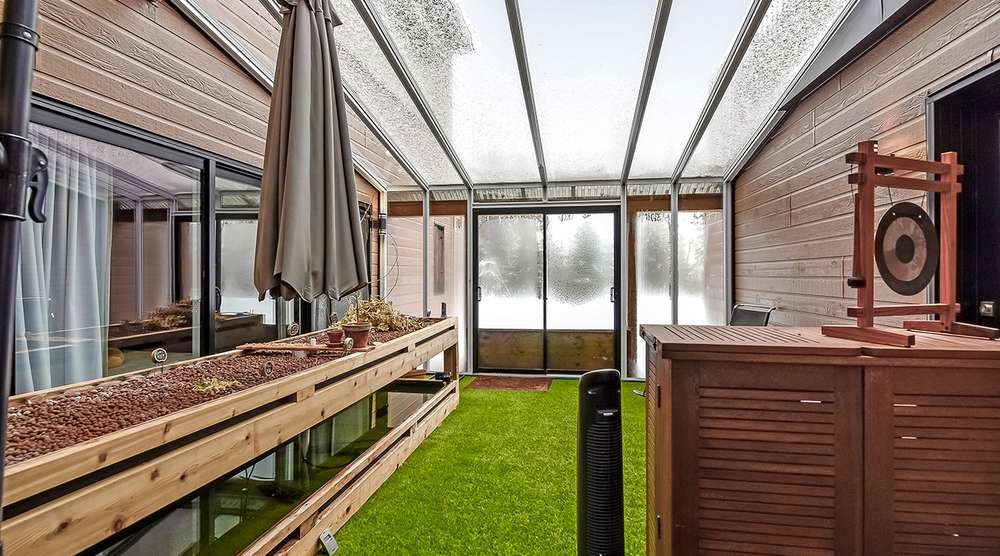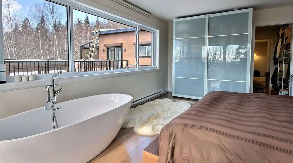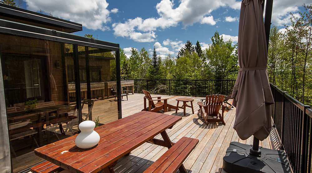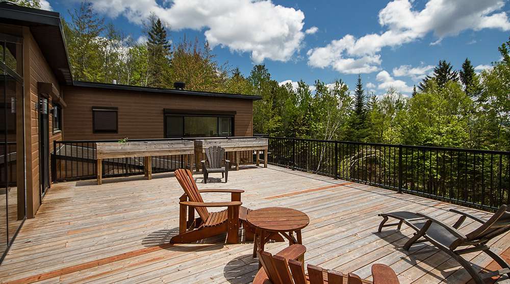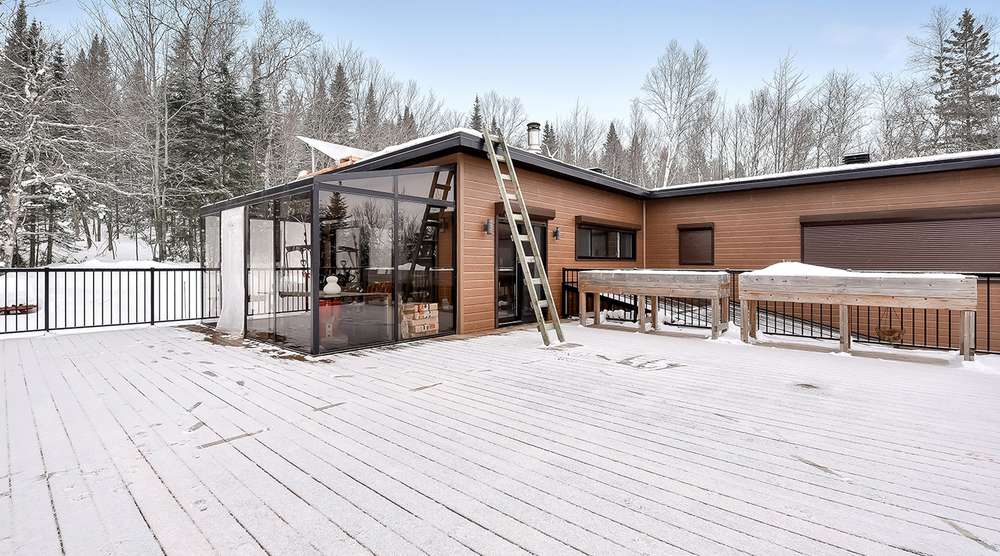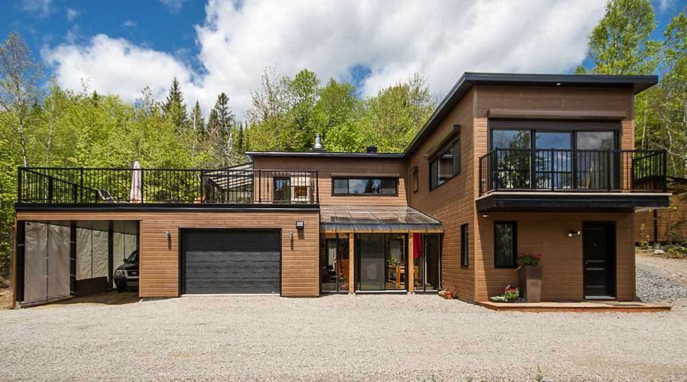 Première Maison Iougreen au Québec et au Canada, cette propriété située sur flanc de montagne offre une vue enchanteresse. Son terrain boisé en partie aménagé de presque 67 000 pi2 donne accès au Lac de Fossambault.