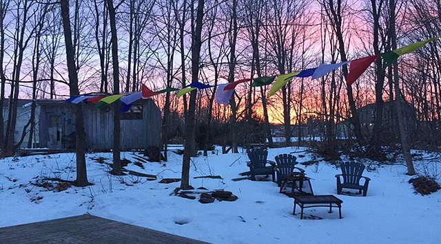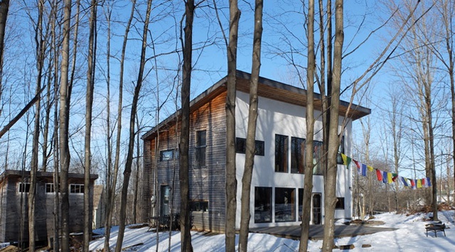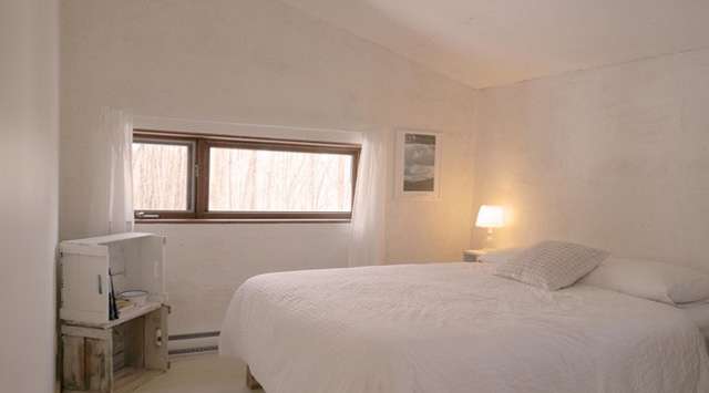 Avec un vaste terrain boisé de 32 598 pieds carrés, elle est située à 10 min. du village de Frelighsburg dans un quartier de Dunham très paisible, près de tout: cafés, restaurants, microbrasserie Dunham, boulangeries, épicerie fine, dépanneur, guichet automatique, bibliothèque et école à quelques pas de la maison. Très intime, elle est cachée des voisins l'été, grâce au feuillage de la forêt.