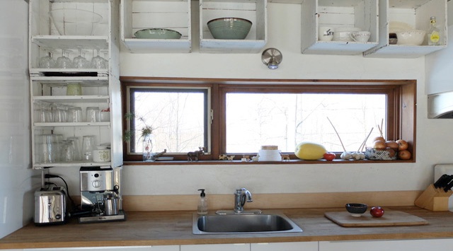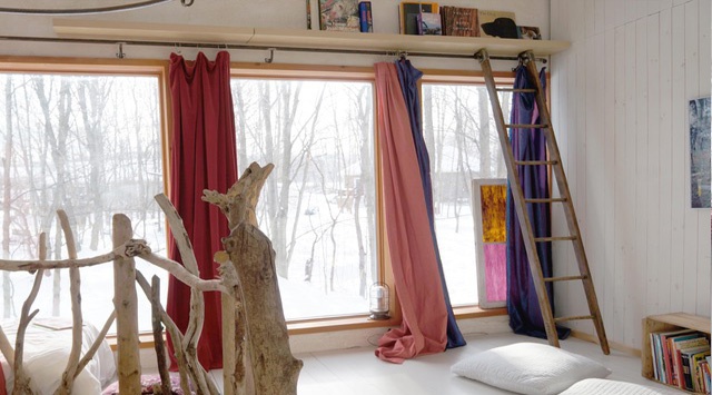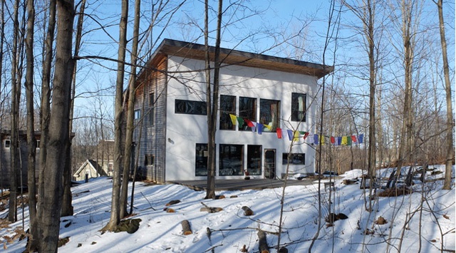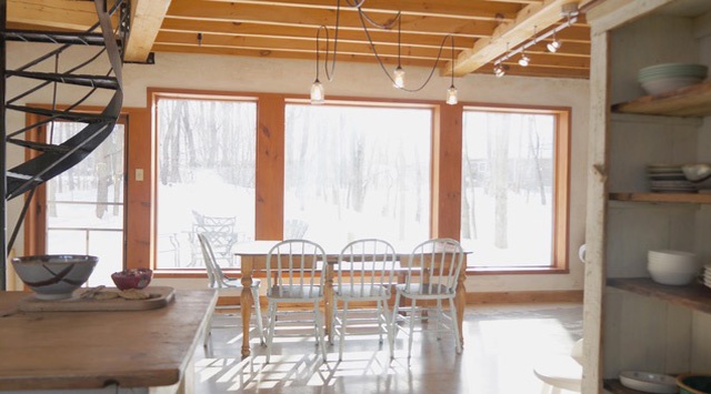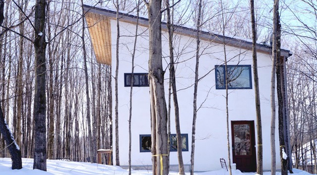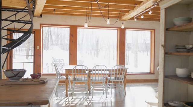 Orientée plein sud avec d’immenses fenêtres devant une forêt de feuillus, cette maison est des plus confortable : fraîche en été, ensoleillée et réconfortante en hiver