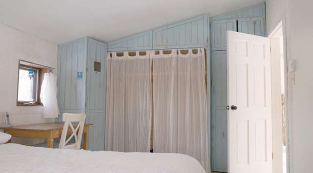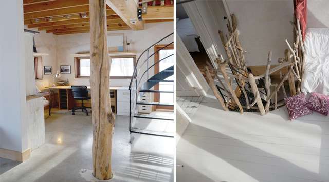 - Murs finition à la chaux, poutres de bois apparentes