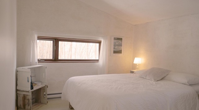 Maison écologique très lumineuse, paisible, confortable, chaleureuse en hiver et rafraichissante en été. Pleine de caractère, avec son design épuré et ses matériaux sains, ses murs finis à la chaux et poutres de bois apparentes, elle offre également de magnifiques levers et couchers de soleil. Les jolis vallons du terrain permettent des glissades en hiver.