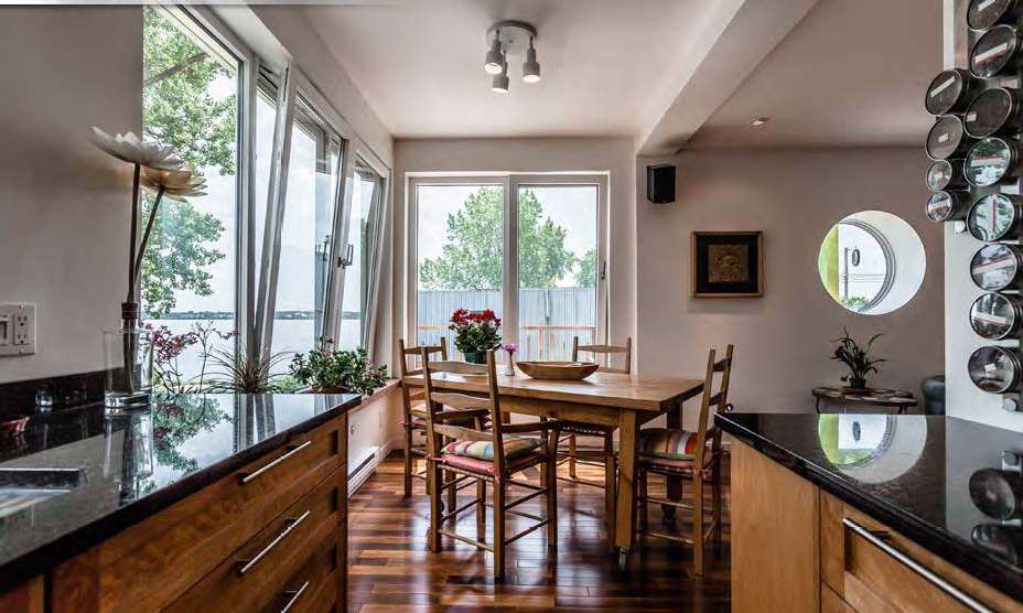 Sur le bord du canal Lachine au confin du Lac St-Louis et du fleuve St-Laurent, cette maison unifamiliale d'artiste, anciennement un duplex, a été restaurée entre 2004 et 2007, avec un soucis de l'environnement, de la santé et de l'efficacité énergétique.